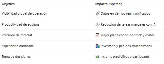 El reto: consolidar datos y procesos fragmentados, reducir tareas manuales, mejorar forecast y visibilidad en tiempo real, y ofrecer una experiencia omnicanal eficiente.